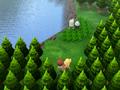 Made from soil, the shell on Turtwig’s back hardens when it drinks water. Turtwig lives along lakes, and the leaf on its head will wilt if the Pokémon is thirsty.