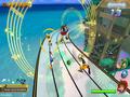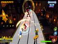 Arrows are no longer tied to your movement but indicate whether you need to jump before hitting a note or slide to avoid enemy projectiles. Sustained notes have you flying in the air, where you can use your movement buttons to collect notes while you hit another button to hit special crystals that unleash magic spells on enemies. Failure occurs if you miss enough notes to drain the energy meter to zero. It sounds complicated on paper, but the system is easy to grasp in practice, but it's a mystery why the initial rhythm system is introduced so early when you're rarely going to use it.