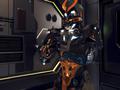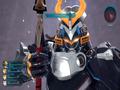 A swordsman whose entire body has been fully turned into a machine. He meets Raymond and Laeticia during a battle to protect his home. He is calm and collected, just and honourable, and the type of person who values his friends and allies. He carries a thin bladed katana and fights with a unique style of swordsmanship. J.J . favors the katana. He uses two types of swordplay to create his unique combat One set of skills features devastating strikes after long periods of buildup; these do not increase his VA gauge. His other set of skills are powerful counters with strict timing requirements; these greatly increase his VA gauge.
