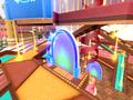 - World 1 – Banana Farm: \World 1 is naturally designed to progressively teach players all the tools and tricks to set them up for the rest of their adventure! A great example is the stage “Rail Slider,” where steps and ramps taller than the player’s ball are placed throughout the stage. Use the new technique, Spin Dash, to make it through the steps!
