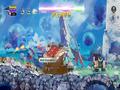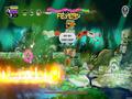 The presentation is pretty brilliant. The music is bouncy and provides an upbeat vibe, which feels easy to work with as far as getting one's rhythm down. The voice acting is overly cheery, even if what you're hearing only sounds slightly familiar. The effects don't overwhelm the soundscape to the point that you lose the beat. Graphically, the game uses a complete palette that makes everything vibrant, while the animations for every character are smooth. The camera could use a bit of zoom-in, as there are moments when even the larger bosses can feel small since the camera is zoomed out too far.