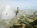 The planes are even more detailed — especially when you hit them and see the bullet holes, the mechanics and structural supports behind the bullet holes, the ground on the other side of the bullet holes, and the shrapnel created by, well, the bullet holes. I was promptly shown that the damage doesn't just look pretty, but seriously impacts your ability to fly, as the bullet holes screwed up one wing just enough to send me spiraling into a crash. I quickly paused the game and chose the "Bailout" option, with my character getting out of the plane and using a parachute. (No, you can't shoot the falling pilots.)