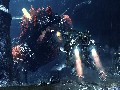Like the last game, this foe has a number of glowing weak points to strike at, with the weak points glowing brighter the more vulnerable they are. However, it wasn't as easy as shooting the glowy, as we learned quickly. I grabbed a VS and used its improved jets to jump up onto the creature's back, where its weakest point was located. After unloading an amount of ammo into it, the created retracted the weak point and unleashed a burst of electricity that almost sent me to my doom.