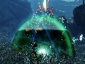 The biggest difference in Lost Planet 2 is that you're no longer trapped in a hellish ice wasteland. During our demo, we seemed to be playing on a rather nice little tropical world, filled with lush greenery and sparkling water. As a result, T-Energy isn't quite the "in-demand" thing it used to be, but that doesn't mean that it has gone out of style. Indeed, knock-off Harmonizers have trickled out among the fringe elements of the universe, and they in turn have taken to collecting T-Energy for their own usage. T-Energy is used manually in Lost Planet 2. You press the Start button to activate your Harmonizer, which pumps T-Energy into your health bar and refills it. If you have enough T-Energy, you can refill your entire bar as many times as you like, although you can even share it with other players, allowing them to refill their own health if they've been less cautious or lucky than you are. It's a lot more crude than even the basic Harmonizer that you had in Lost Planet 1, but it does the job.