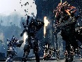Unlike the first game, Lost Planet 2 doesn't follow the story of any single character. Instead, we join a band of soldiers who are struggling with the changing universe 20 years after the events of the first title. The game fully supports co-op gameplay, with four characters working together to plow their way through enemy lines. In the demo, this was represented by an interesting "team health" system. Each character has his own health, but then the team as a whole has points. When a player captures a checkpoint or does certain things correctly, he'll gain points, and when he doesn't, he loses points. As long as there are points left, a player can respawn at any checkpoint in the area. If you run out of points, your team is in a bad situation and can't respawn. It's a good way to encourage players to be cautious without the all-or-nothing risk of Capcom's other big co-op experiment, Resident Evil 5. There were quite a few checkpoints scattered around the demo area, and collecting them not only helped our team pointwise, but it also gave us extra respawn areas, which were essential for flanking our foe.