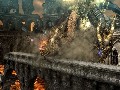 However, where the floor demo left off, Sega's closed-door session would continue with another stage showing Bayonetta running along the sides of rustic buildings lining a street filled with a rushing torrent of lava. Floating, broken stones formed pathways across this burning river where a cresting wave of fiery death relentlessly pushed Bayonetta ahead. This sequence ended with her climbing the side of a tall clock tower that had broken in half and begin falling until she had managed to get away.