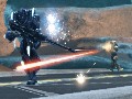 The bot system is also significant, although not revolutionary. The bots were done reasonably well but were clearly meant as stand-ins to keep the game operating with all players in. They're also kept obvious, with generic names like "A. Clef", while players have their more creative options. However, the title lets players drop in and out easily indeed; you just take over one of the bots or let one of them take your character. It wasn't clear how this would work with the weapons/equipment load-out system.