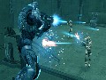 The weapons load-out system is also mildly creative. Each character carries two primary weapons, two pieces of equipment ranging from grenades to shoulder-powered missile launchers, and you can select your options from the entire list, as in Call of Duty. You can also adjust your armor with 10 points to invest in a set of properties, such as improving your lock-on ability, making yourself stealthier, or being tougher or faster. The weapons were all the normal standbys, so there was nothing exceptionally special here, but it was all neatly balanced. The omission of one-shot kills, combined with the "burning meteor" phenomenon, tends to discourage sniping in favor of more close, chaotic combat.