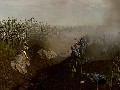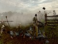 Schurman made it clear that the player could run right out into the wilderness because there were apparently no boundaries, but the player would quickly die for obvious reasons, all of which were shooting arrows and wielding hatchets. I'm guessing that's how the game keeps the player from going too far out of bounds, but as I was to find out, there were other tricks that it would use within the logic of each battle. Finally, a scripted event drove an arrow through Morris' leg and downed him, but he could still fire and see the surviving soldiers in Custer's group start to thin out. Custer eventually fell after yelling for his men to keep fighting, and then that's when the twist hit the screen.