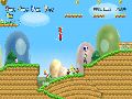 First, there's the four-player simultaneous play, which I can't really label as co-op or versus play. Similar to Legend of Zelda: Four Swords, you play as four different characters (Mario, Luigi and two different Toads) who can make the levels quite easy for each other. The Nintendo rep indicated that if the levels were tackled solo, they would be about as difficult as the oldest Mario games. Upon completion, each level rates each player by the number of coins they managed to acquire, and this is promptly followed by the players driving each other comically insane. Jump off your allies' heads to get a boost to that coin, or have them throw you to it. (Just hope that they won't chuck you off a cliff ....)