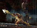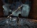 The basic gameplay in Dante's Inferno is, as mentioned, very similar to God of War. Dante is a fast-paced warrior who is capable of brutally tearing apart his enemies with his various weapons. In our E3 demo, he had access to two weapons: Death's Scythe and the Holy Cross. Death's Scythe is his primary weapon and is made of bones that can stretch outward, allowing Dante to attack at a greater distance than one would assume from the shape. It can be used as a makeshift grappling hook or just as a weapon to tear enemies asunder. It can also block attacks, and with careful timing on the block, it can even stun enemies for a brief moment. There are various combinations of light and strong attacks that can be worked together to activate different scythe combos. Dante's second weapon is the Holy Cross, which fires cross-shaped blasts of energy at his opponents. They allow Dante to attack at a distance, and the cross can be charged up for more powerful attacks. In the demo, the two weapons could be used together for lengthy combos, such as using the scythe to set up enemies for a point-blank shot of holy power. It also seems as if Dante will gain access to various powerful magic abilities, although we didn't get a good look at them in our brief demo.