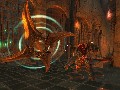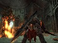 War is, as one would expect, not too different from his fellow action/adventure mainstays, Kratos and Dante. It wasn't very difficult to get into the swing of things due to my experience with those two games, but there are some interesting differences. War uses two weapons at once, which is a nice change from the usual problem that plagues these types of games. War's main attack button, X, is always dedicated to his main blade, thus providing a reliable backbone for your fighting style. War's secondary attack button, Y, is bound to a weapon of your choice. Depending on the situation, you may find yourself using a powerful gauntlet or even Death's own scythe. In our demo, we got to check out the gauntlet, which was a close-range and powerful weapon. It was slower than War's main blade, but when used in conjunction with the other attack, it allowed for devastating and brutal combos. It also gave us access to the ability to counter-kill, an instant-kill move that can be performed when the gauntlet flashes and provides additional rewards for any enemy who is killed that way.