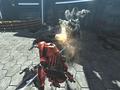 The AR system and boost system are not required elements of the game, but they encourage players to be the best they can. If you choose to play Vanquish like a cover shooter, it has a lot of familiar elements. The cover mechanics are quick and smooth, and you have access to the usual tricks: blind fire, dive out from cover, throw grenades and generally play the game like Gears of War. It's not the best way to play, though, since you'll be trapped and vulnerable in situations where mobility could be your greatest asset. You have some neat gimmicks that allow you to move away from cover. Pressing LB while Sam is behind cover causes him to pop off his mask for a moment and light a cigarette. After a moment, he'll toss the cigarette into the air, attracting the enemy's attention. Doing this is not only stylish, but it's also a great way to draw away enemy fire.