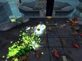 When killed, certain enemies, such as scarabs and spiders, drop power-ups that take the form of extra guns, extra lives, or plant-based "turrets" that shoot at nearby enemies and attract bugs away from Max. Getting the same power-up to spawn near a turret gives you a double turret, which can quickly clear out a swarm, but its immobility and the sheer number of insects tend to give it a short lifespan.