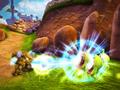 In Skylanders, players are thrust into one of a series of dungeons and tasked with getting to the end. You have a few different attack buttons available, so your monsters can use different skills. There's a variety of enemies to fight, but the gameplay seems straightforward and simple. It's almost akin to a beat-'em-up, although with more variety than one usually sees from that kind of game. You're tasked with getting through a level and beating up everything between your character and the goal. It's simple and straightforward, although the game was clearly designed to be replayed. In a way, it's sort of like a kid-friendly Diablo, right down to the loot collection.
