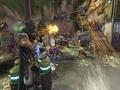Every player has the ability to spawn a vehicle to get around the game world more quickly, with the demo build allowing us to spawn quads to navigate the landscape. Before long, we encountered the beginnings of our first event, which, in the same vein as Rift, consisted of some aliens spawning near a central structure that must have been destroyed before the players could make their way to the next phase of the event. Once at the final phase, the players had to all work together to take down a massive alien creature, complete with crushing arms and acid spit. Should a player take one too many hits, he/she drops to the ground and can respawn at a nearby point or be revived by any friendly player in the area.
