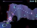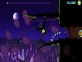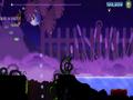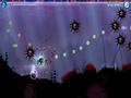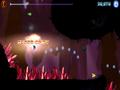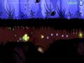 Graphically, Alien Spidy has a style that's similar to Patapon. The three environments feature lots of dark colors that are contrasted with the brighter colors that are used for power-ups, webs and your character's eyes. The style looks picturesque, especially with the abundant use of colorful particle effects.