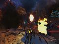 The one-on-one multiplayer fight was a similar composition of units, only with two players adopting vastly different strategies. One player decided to play defensively and build both income-generating buildings as well as a battery of defensive turrets, while the other used much of his initial funding to spawn in a bunch of units. The resulting battle was of units on both sides slugging it out while the two developers began dogfighting on their dragons. The dragons are fairly vulnerable against other dragon attacks, and usually those battles were over fairly quickly, with the victor able harass the enemy units largely unopposed. The defeated player can respawn his/her dragon after a time, and in the interim, the player is completely reliant upon his/her units alone.