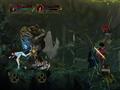 You embark on your quest with two playable characters, though you unlock a third character later on. Each character has a different weapon and ability selection. The male character has a big sword to charge and lunge, and he also has a bouncing fireball move. The female character exchanges power for speed and magic. We didn't see the last character, but we were informed that she uses a spear and has better long-range capabilities.