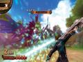 One cool feature of the game is the Fury system. Furies are special swords that are sealed into two gods who are a major part of the storyline. One is a dark god of evil, and the other a holy goddess of light. When you find a fairy in the dungeons, you can return to the resting place of these gods to imbue the fairy into one of the weapons, creating a fury for you to use. A fury is made up of two elements: a positive attribute and a negative one. When you go to the world map, you can thrust a fury into the ground to create an aura that grants those attributes to any dungeons within the sphere of influence. These attributes can be something like "x2 experience points gained but enemies are tougher" or "You do extra damage but you can't heal." The exact combination depends on which fairy you put into which fury. You can have multiple furies out at once and create overlapping fields on a single dungeon to make it more difficult and more rewarding.