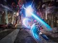 Infinite also has a story, aside from the vague hints at one that characterized the last game. The general idea seems to be that Ultron has reached across dimensions to contact Sigma, the villain from the Mega Man X series, and the two have merged into a single being. In so doing, they've merged Asgard with X's home city, turning its inhabitants into either robotic drones or tech-infected cyborgs who instantly obey Ultron-Sigma's commands. The plot involves a joint effort by an Avengers team and the Capcom heroes to infiltrate Asgard and rescue Thanos in order to discover the location of the one thing that might be able to stop Ultron-Sigma: the Infinity Gems, which are scattered all over the world.