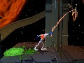 Earthworm Jim centers around an ordinary earthworm who engages in normal worm activities- eating dirt, crawling and fleeing from hungry birds- until he comes across a high tech indestructible space suit. Jim takes refuge in the space suit while fleeing from hungry birds. The suit's powerful atomic particles cause him to grow and obtain newfound powers.